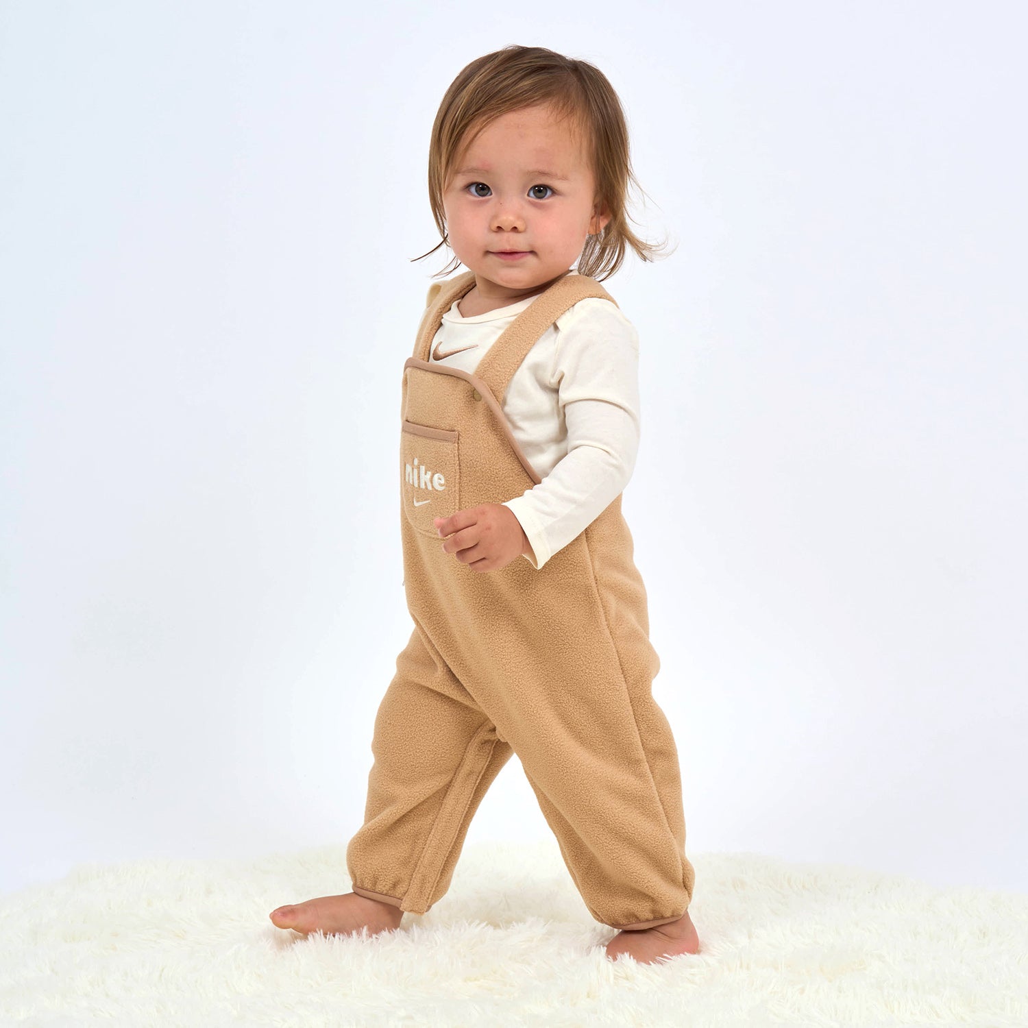 柔らかな風合いのオーバーオールと長袖ボディスーツのセット。肩紐デザインと裾のスナップボタンで着替えやおむつ替えも簡単です。胸元のロゴ刺しゅうがポイントになり、デイリーにもお出かけにも使える便利なベビーアイテムです。※月齢のサイズによりボタン・ファスナー・ポケット・袖・裾などの仕様やデザインが異なる場合がございますのでご了承ください。[新生児 出産祝い ベビー服 赤ちゃん ベビーサイズ ベビー用品 かわいい][NIKE]